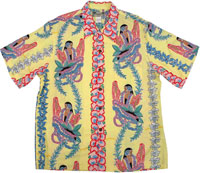 KAMEHAMEHA!! ORIGINAL PRINT ,1936 Made in Hawaii Lei Lady ENGINEERED PRINT 商品価格=¥12.000− +tax 100% RAYON ココナッツボタン size= S,M,L,XL・・・・US サイズでワンサイズ以上大きめです。