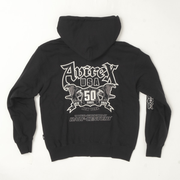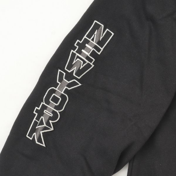 素材はいつもよりもヘビーウェイトで作成し肉厚なものを使用しレザーと同じグラフィックを使用したパーカー