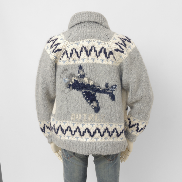 ブランドイメージの鷲と飛行機をモチーフに手編みしています。