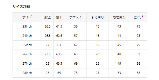 ホワイトをはいているマネキンさんのサイズは27インチです。