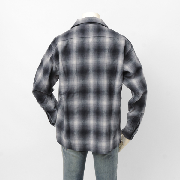 グラデーションを描くオンブレチェックを採用したフランネルシャツ。