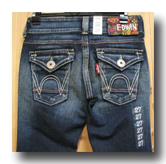 見ての通りラベルは、サイケ調の刺繍ラベル スラップポケットに、デフォルメのボタン、リベット等