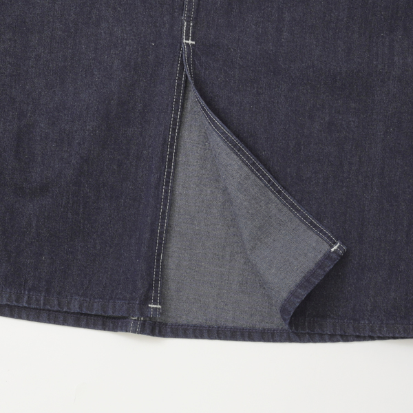 ざっくり着られるオーバーオールスカートですが、すっきりとしたAラインシルエットなのでとても着やすいアイテムです。