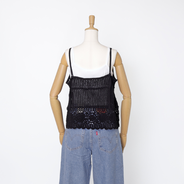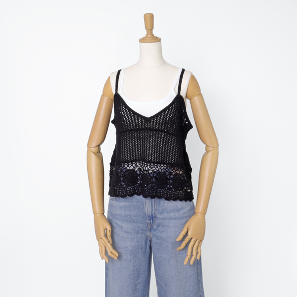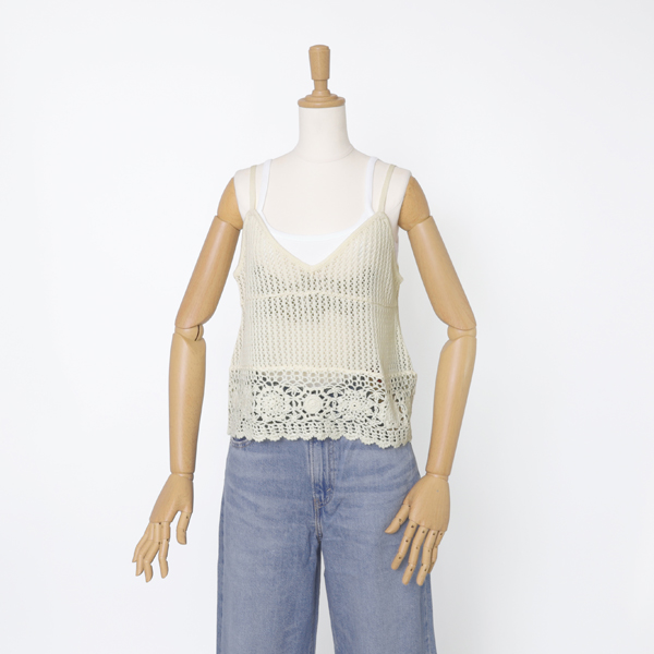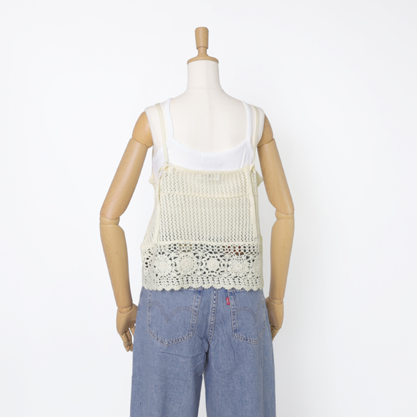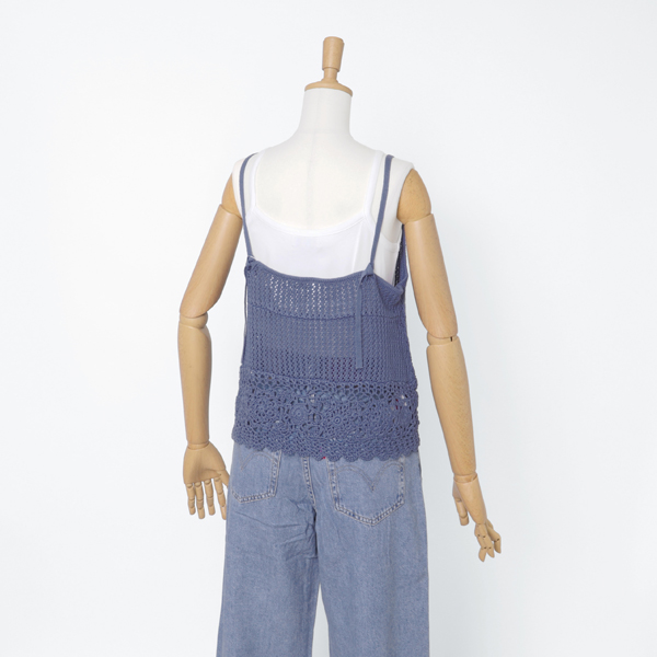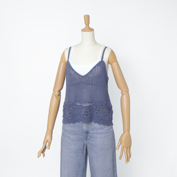 繊細なクロシェ編みのパターンは、手編みならではのふっくらとした温かみのある風合いが魅力。