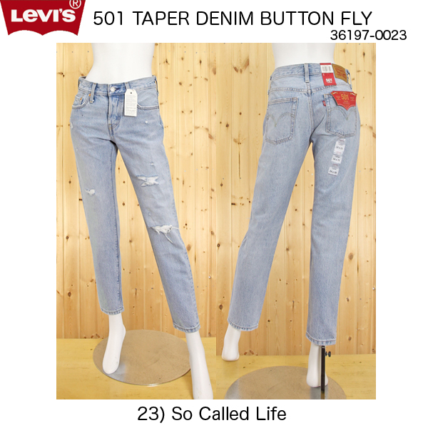 オリジナルの裾をタイトに仕立てて着こなす新しいスタイルです 股上普通、足首にかけて細くなるテーパードスタイル TAPERD TAPERD REG ボタンフライ 36197-00 綿100% 23)SO CALLED LIFE ( クラッシュライトユーズド) 23.34.25.26 ¥13.200- 本体価格=¥12.000- +税