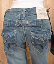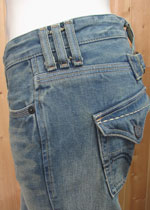 尖ったバックフラップ、ローダウン気味のバックポケットが特徴!