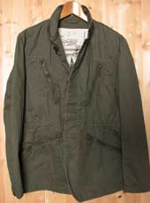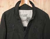 染料顔料でバイオウォッシュをほどこしたヘリンボーン素材のミリタリージャケット