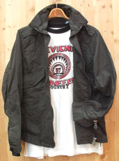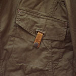 ポイントは、胸元のリベットを打った大きなポケットと両肩のポケットです。