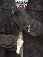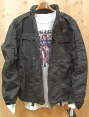 税込み価格=¥16.800- 本体価格=¥16.000- ランダムヘリンボーン素材のM-65タイプ。チンベルトのレザーもアクセントとなってます また、隠しフードや、裾をドット釦を使って捲る事もできる遊び心のある商品です。 ミリタリーライダーズのおもむきもございます。 WEB上では、実際のカラーと違って見えます場合が多分にございます。ご了承の上お買い求めくださいませ。
