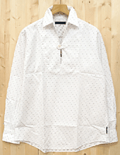 ドット柄にドビーを入れた、プルオーバーシャツ インナーをちらりと見せるスタイリングに合うのではないでしょうか?