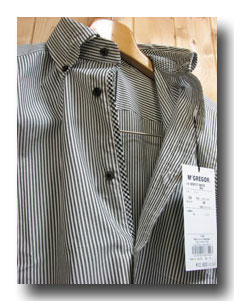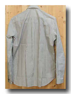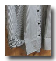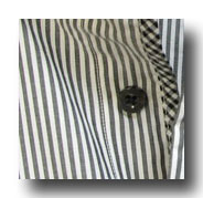 ヒッコリーストライプに、襟裏、袖裏、前縦部分にそれぞれギンガムチェック柄を