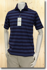 た着心地良いきめ細かい天竺ニット編みのラガー風ボーダーポロシャツ。