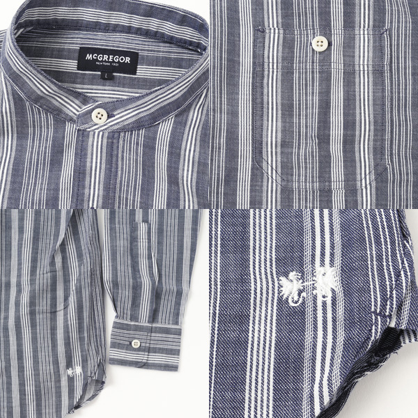 マクレガー 111174103 バンドカラーストライプシャツ 綿100% 長袖シャツ