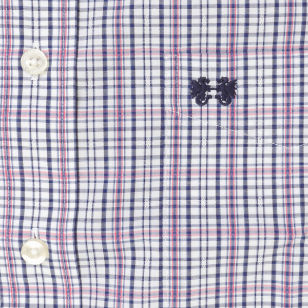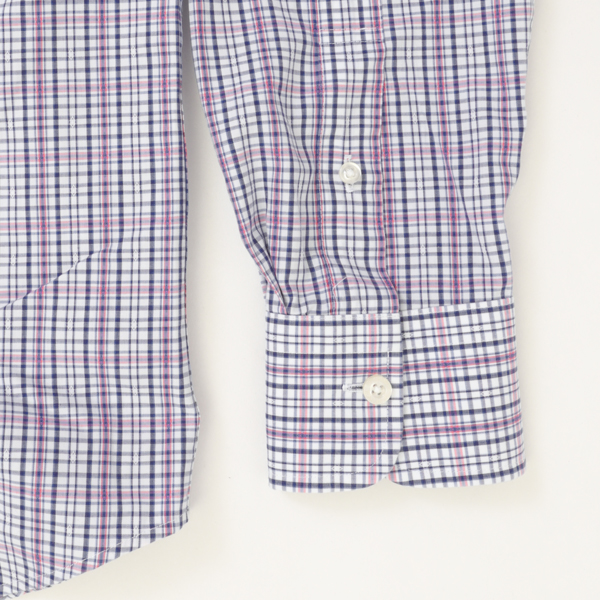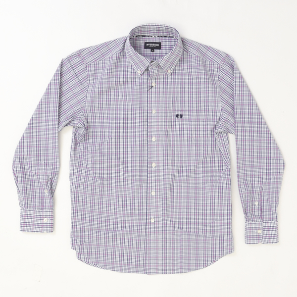 春らしいチェック柄のボタンダウンデザインのシャツです。 防皴加工に加えて皴になりやすい縫い目部分にテープを挟み込んで 縫製することで洗濯後の皴を軽減されます。 春らしいきれいなチェックとがジャケット等のインナーに最適です。