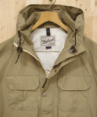 持たすために、横糸に綿60%、縦糸に=ナイロン40%を使い織られたアウトドアーを代表する機能素材です。