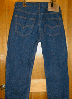 水洗い1回目 ウエストサイズが表示 どうりになる。これ以上 つまらなければ良いの だが・・・多少詰まっても 履き慣らすとそれ以上 に伸びてくるものである ので、別段気にすること はないと思う。 |