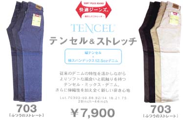 テンセルミックスデニム。 更に伸縮性を加えまったく新しいはきごこち。