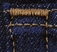 縫い目に補強するために打ち付けられた鋲。鋲だけでなく、ジグザグ縫いで止める方法 もこう言われている。また、バッテン止めとも言われている。ミシンで何度もジグザグ縫い、 バッテン縫い(Leeなどに多く使われている)で補強する止め方。 ![]() |