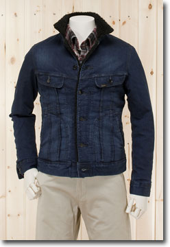 身頃表部分 綿98% ポリウレタン2% 裏ボア ポリエステル 73% アクリル27% 袖裏 ポリエスエテルキルティング 100% 326)DARK USED 346)MID USED サイズ=S,M,L 本体価格=¥17.000−