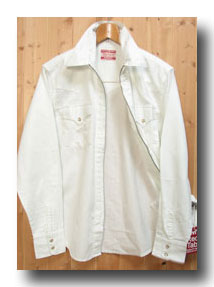 ミニヘリボン柄のソフトなジップウエスターンシャツです。ジップは、ダブルオープン仕様で、下からも開きます。