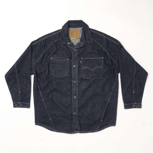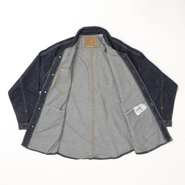 着こなしとなります。厚手感ある羽織のデニムシャツジャケット。