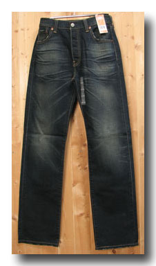 インディゴカラーをコーティングのようにかぶせユーズド加工、ヒゲ加工等演出、