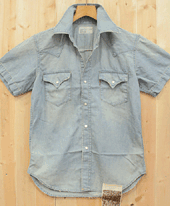 完売御礼 ウエスターンシャツ 7オンスデニム 綿100% 74)ライトロックユーズド 84)ミッドロックユーズド サイズ=M,L 税込み価格ー¥8.400− 本体価格=¥8.000