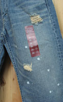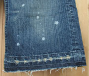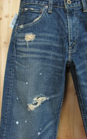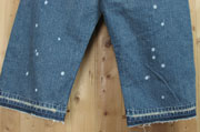 ペイント跳ね仕様のクラッシュ横糸残し、裾ほどけ仕様の