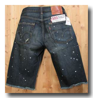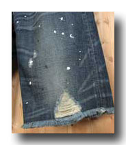 ペイント跳ね、裾はカットオフ、横糸残しクラッシュ仕様