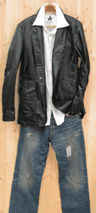 70’s風のタイトなテーラードジャケットです。袖ぐり等細めの仕上げになっております。