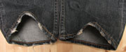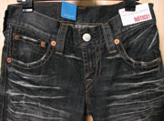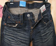 胴リベット、シルバーボタン、パッチラベル、バックポケット、ヒゲ加工等