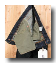 カーキグリーンのヘリボンスレーキー。物資不足の代用品として他生地の使用を再現。