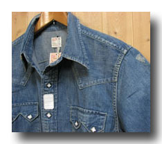 裾カットは、カットオフ止め仕様!スナップボタンは、スクウエアーホワイトボタン。