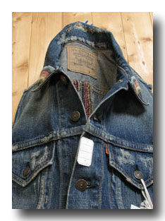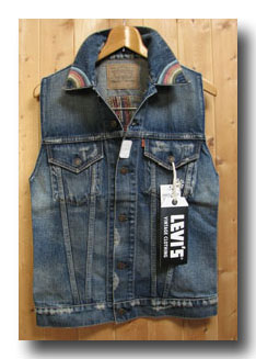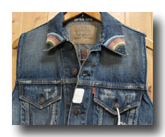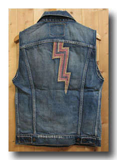 生活感あるリアルなユーズド仕様。、衿とバックには、稲妻レインボー刺繍!ワイルド感ある、ベストとなっております。