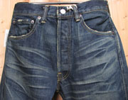 鉄錆び仕様リベット、14oz Denim の濃い目にリアルなユーズドヒゲ加工