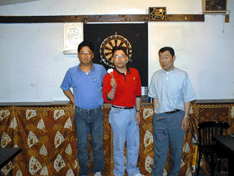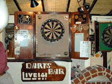 写真で見るように、とっても明るく、気さくで、皆様を 楽しませてくれます。ダーツの刺さる音が“ドン”と たまに、鳴ります。投げたことがある人でしたら、わか るとおもうのですが・・・ |
