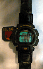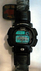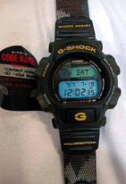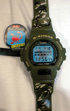 DW−6640−3 初のELバックライト付き迷彩スコーピオン。 バンドがプリントなのが、ちょっと・・・考えものです。 友人のG−SHOCKERでこのプリント柄がすれて消える か?実験したお人がいらっしゃいますが、カッターで削って やっと消えたそうです。 バンドはザクザク、ボロボロ、見た目より強いプリントでした。 |