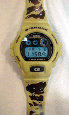 DW−6900F−5 デザートイエローの砂漠迷彩 最初に見た時は、ゴルフのバンカー模様かと思ってしまいました バンドどめが、プラスチックなところが、イマイチ。 |